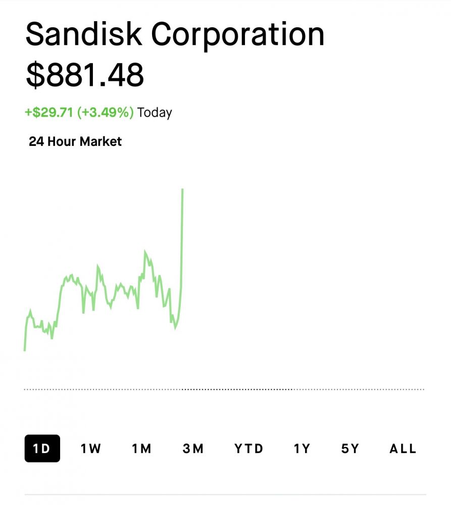 SNDk加入纳指100指数公布后,今天继续大涨破880