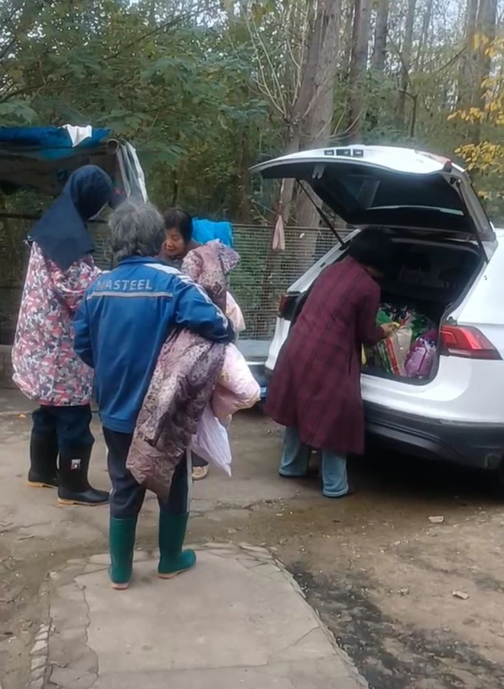 章老师常年住在基地,穿着别人捐助的衣物,脏兮兮的,很像流浪者了。