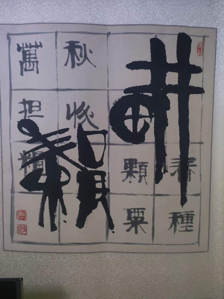 我妈跟我说你哥退休,天天在家画画练毛笔字。我还不相信呢,是遗传了我妈的基因?我妈说嗨,我都多少年没画了。是你哥自己天天钻研天天写天天练不舍得用好纸,普通纸上练习,拿尺子拿铅笔练起,然后才买好纸。就这么一点点画出来了。一开始还装裱完了再送人,后来就顾不了装裱直接送人。