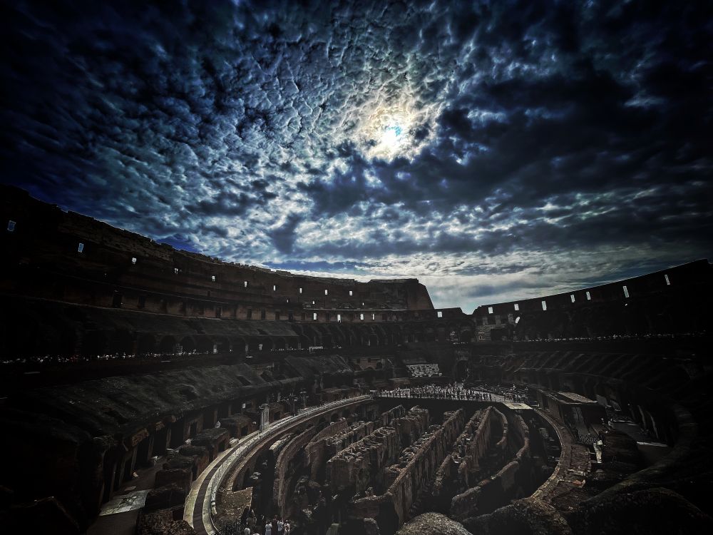 帝国虽亡,余威未散。走进斗兽场,头顶只剩一道天光,四周看台高耸,如山压顶。残破的地面露出地下甬道,仿佛每一块石板都藏着旧日的血腥。天幕低垂,云层翻涌。这里没有声音,却比呐喊更让人震颤。