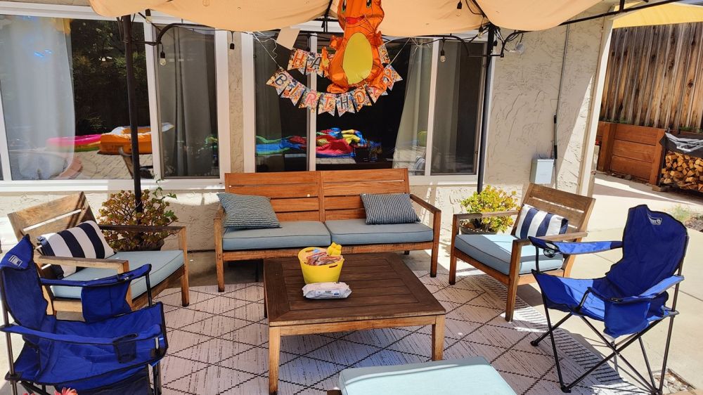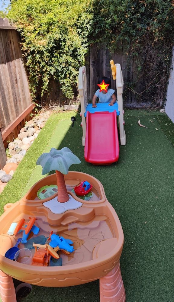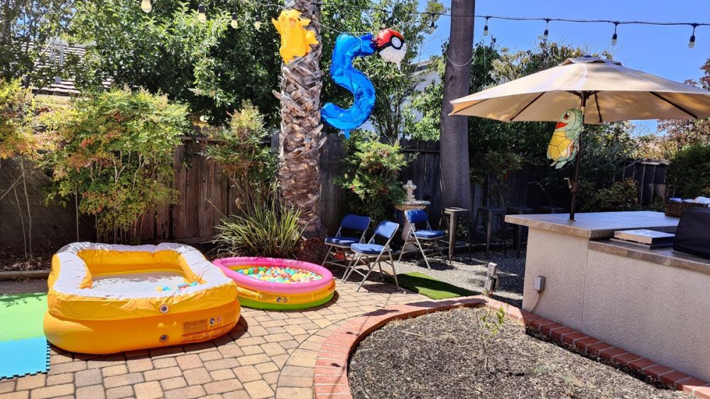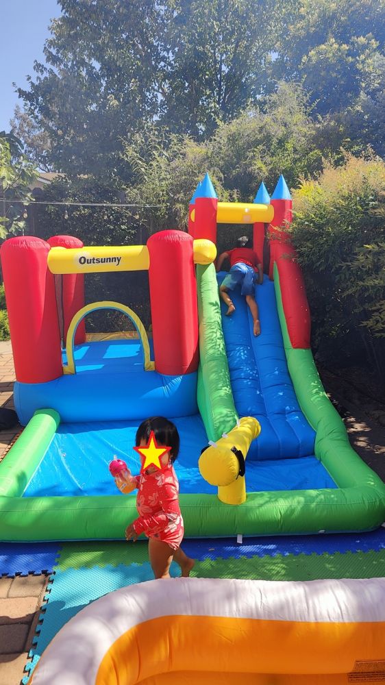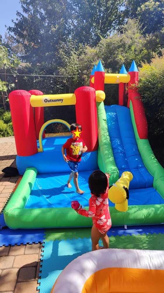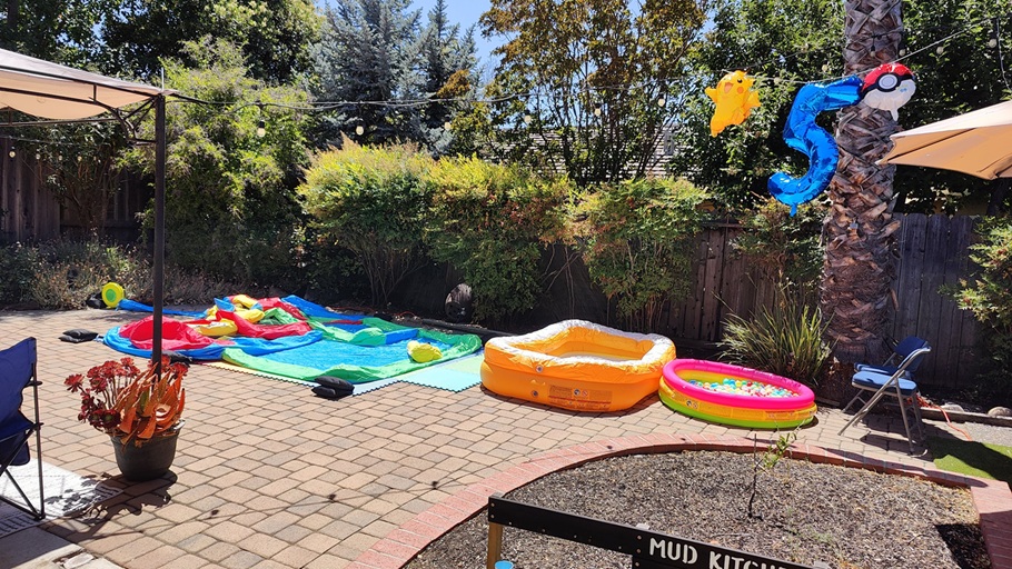 小小阿立嫂事后在家庭群里总结:“Birthday party yesterday! We had a bounce house slide, water tables, pools, and Pikachu box to paint. Pokémon theme(昨天三世的生日爬梯。我们准备了充气城堡滑梯,水桌,小小泳池,皮卡丘纸板箱涂油漆。宝可梦主题)。”