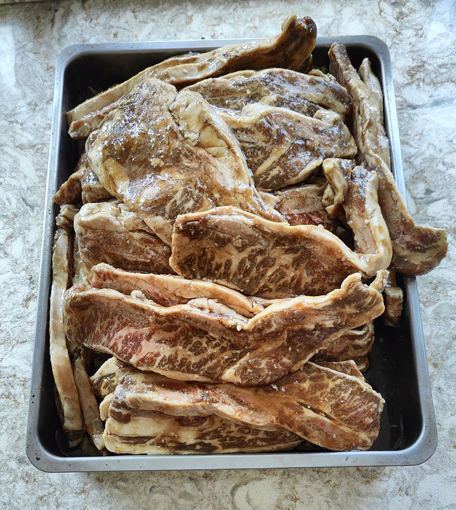 “The Galbi short ribs were from Sam's club. Best quality I've ever bought before(烤肉用的牛小排是山姆会员商店买的。这是我迄今买到过的品质最好的牛小排)。”