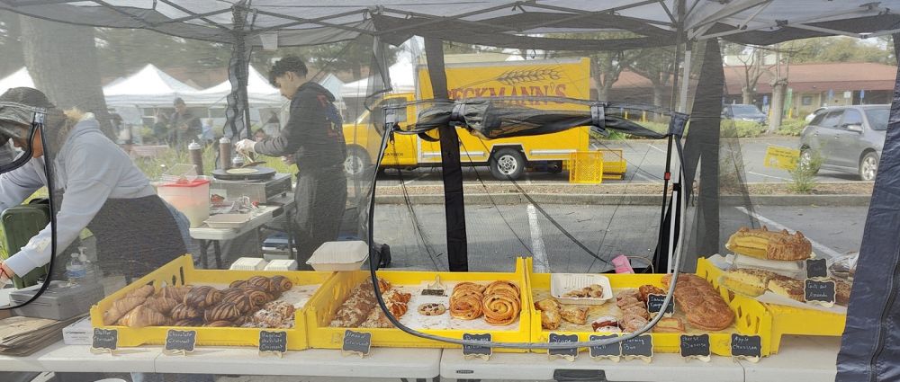 4刀一根法国警棍,阿立掏出5刀现金(农夫市场信用卡手续费百分比蛮高)。收款的有几位,我们面前正好是刚才的美眉糕点师。美眉还记得我,还给我2刀,说:“阿立兄,给你面子,收3刀。”