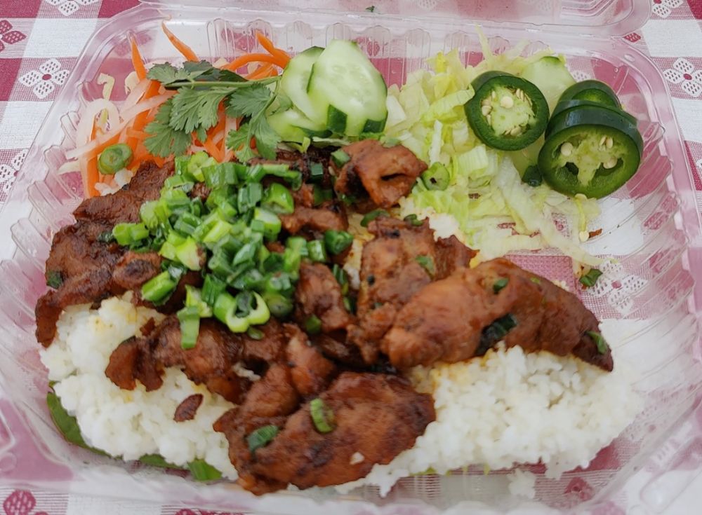 等我品酒回来,小小阿立嫂已帮我们下单,买的是‘Broken-Rice Plate’。看餐牌应该是亚裔美食,不知道具体是哪国风味。