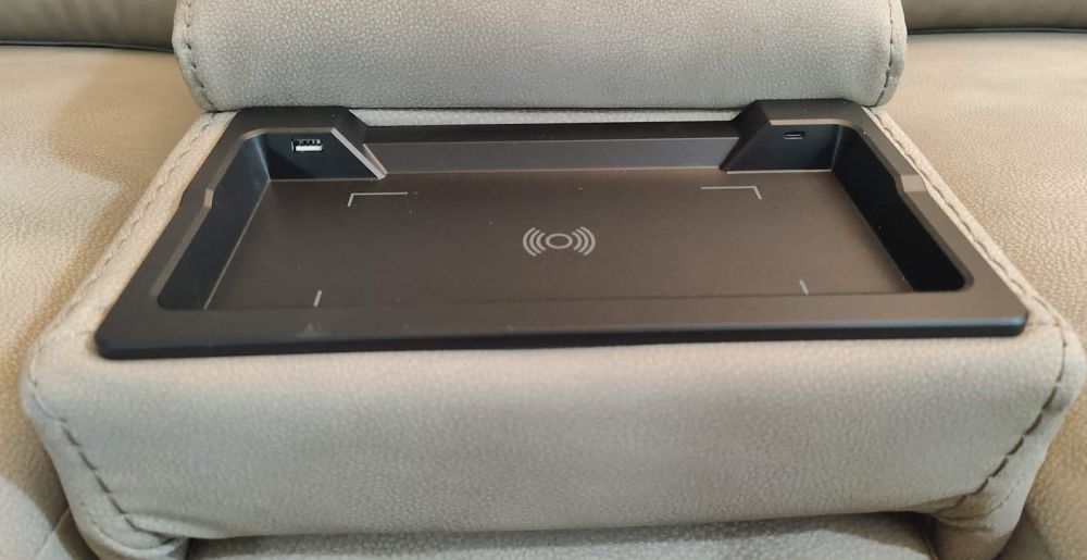 两边扶手的操作按钮旁边,各有两个充电口(USB-A,USB-C):