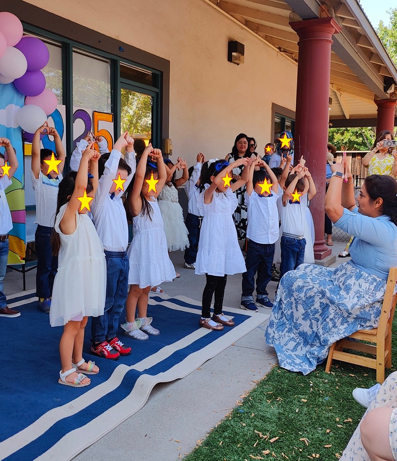 庆祝表演所有班级都参加,从最小的幼儿班(18到24个月)的几个孩子开始。