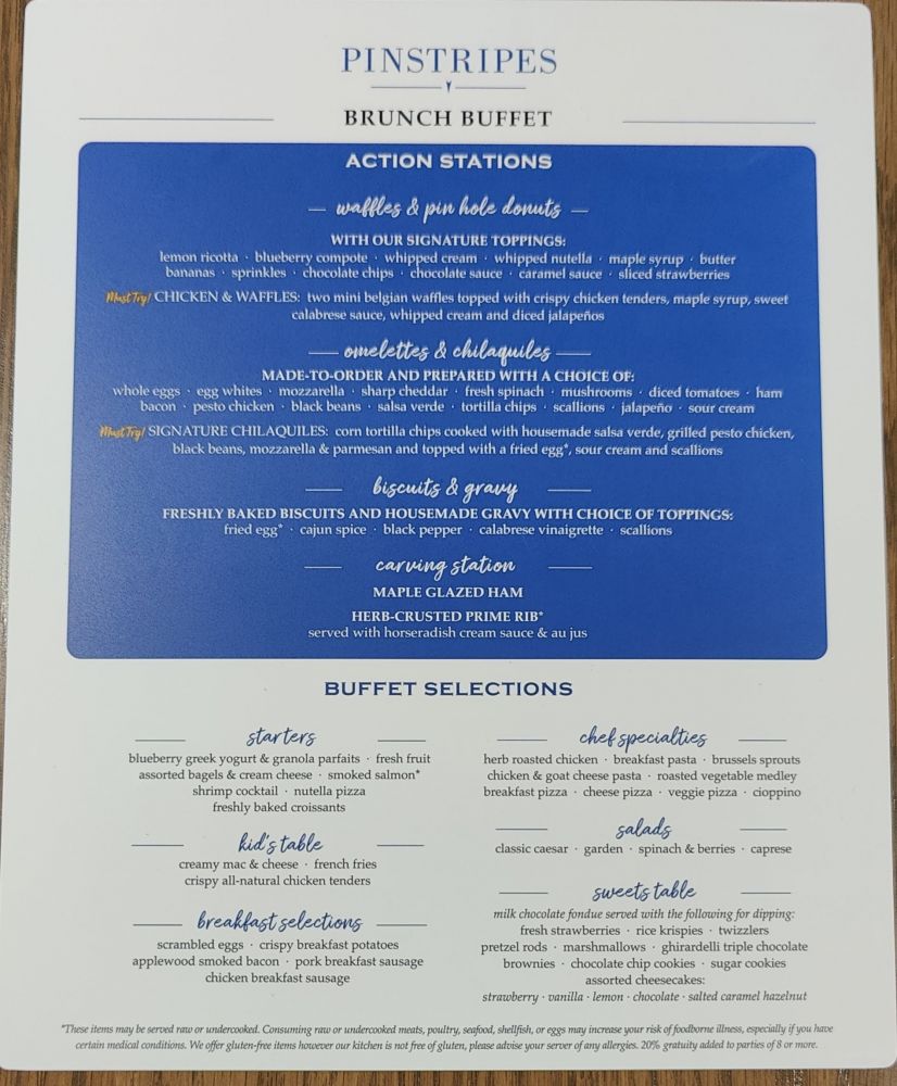 早午餐包肥餐单(Pinstripes Brunch Buffet Menu):