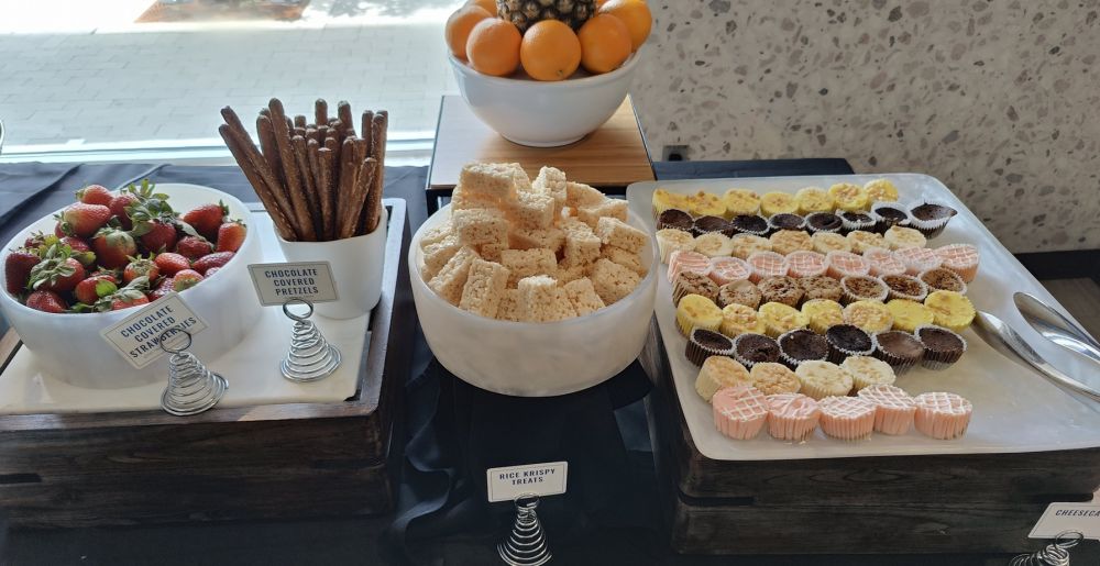小小阿立他们还没到。我们先去洗手间,回来美食柜台随手拍一拍(不全):