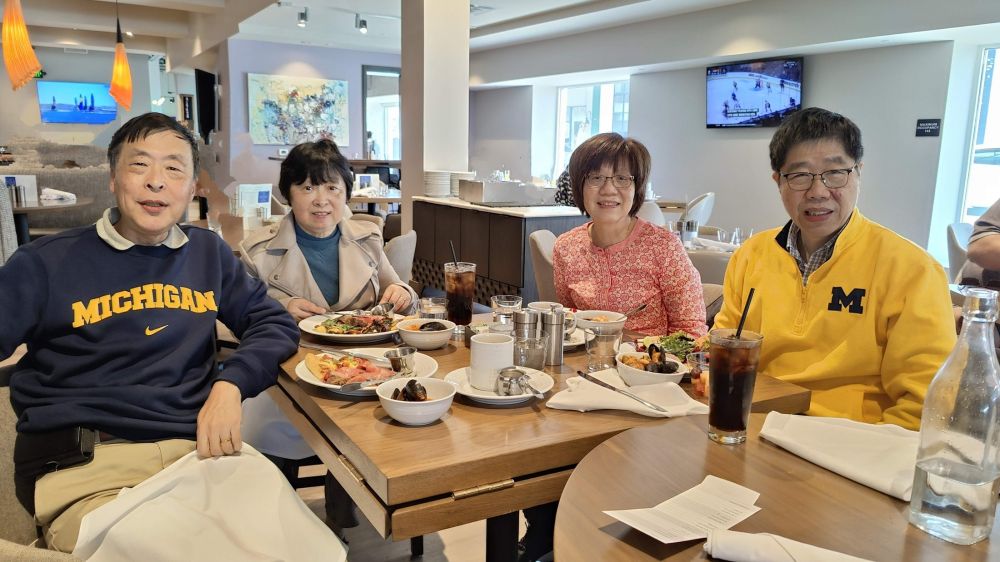 星期天早午餐(Sunday Brunch)订在12点15分,我们分头开车,餐馆会和。