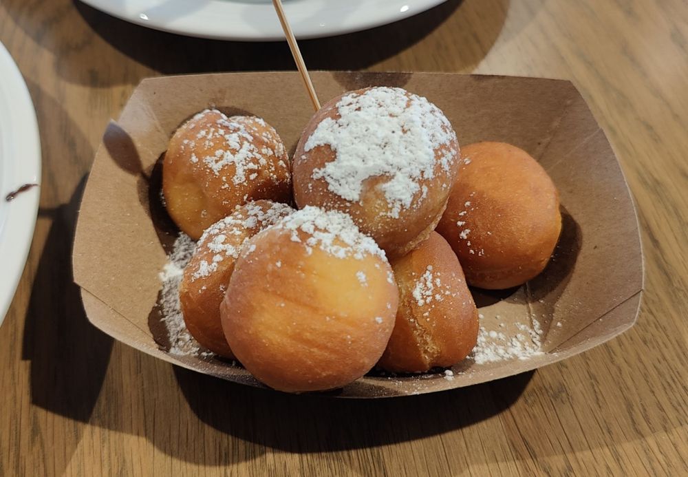 又:《Pinstripes》,直译为‘细条纹’,是否另有深意,当时未及细究。开吃之后才发现,原来餐馆和保龄球颇有渊源。详见下文之甜甜圈球、签,暂且按下。