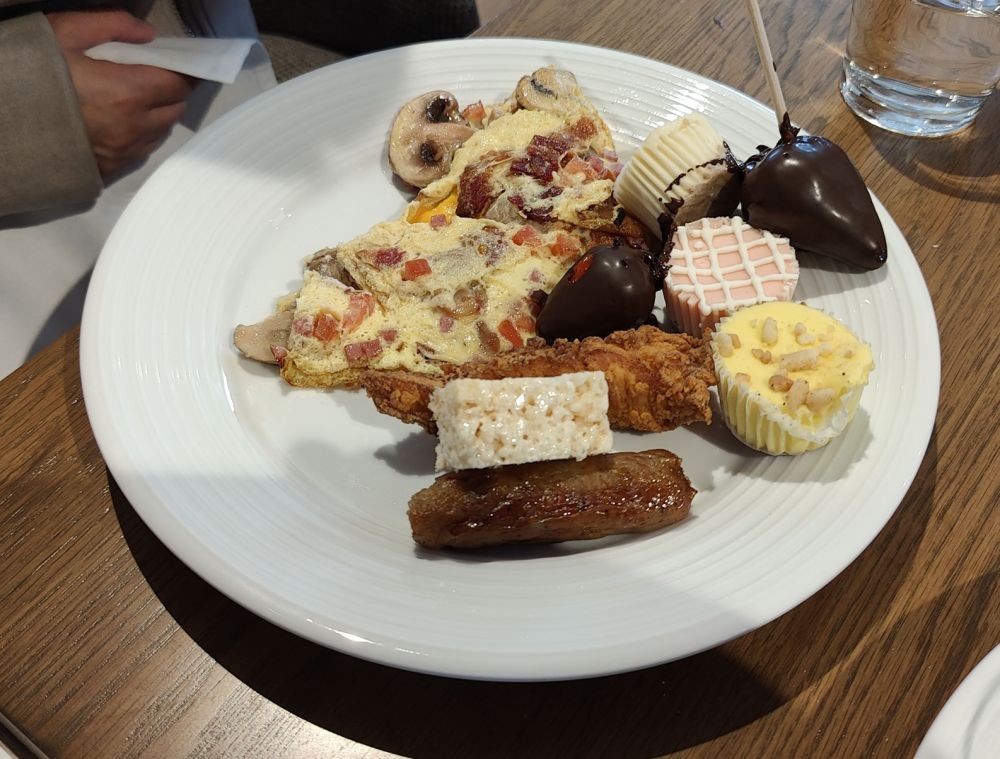 有很多盖着大盖子的咚咚,懒得一一去拍了。还有需要下单,厨师现做的,比如现烤披萨,现做各色鸡蛋:煎蛋、水煮蛋、各色荷包蛋(有5款样品),等等,也都没拍。