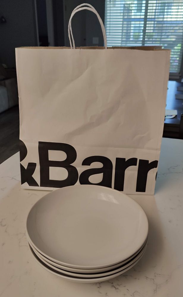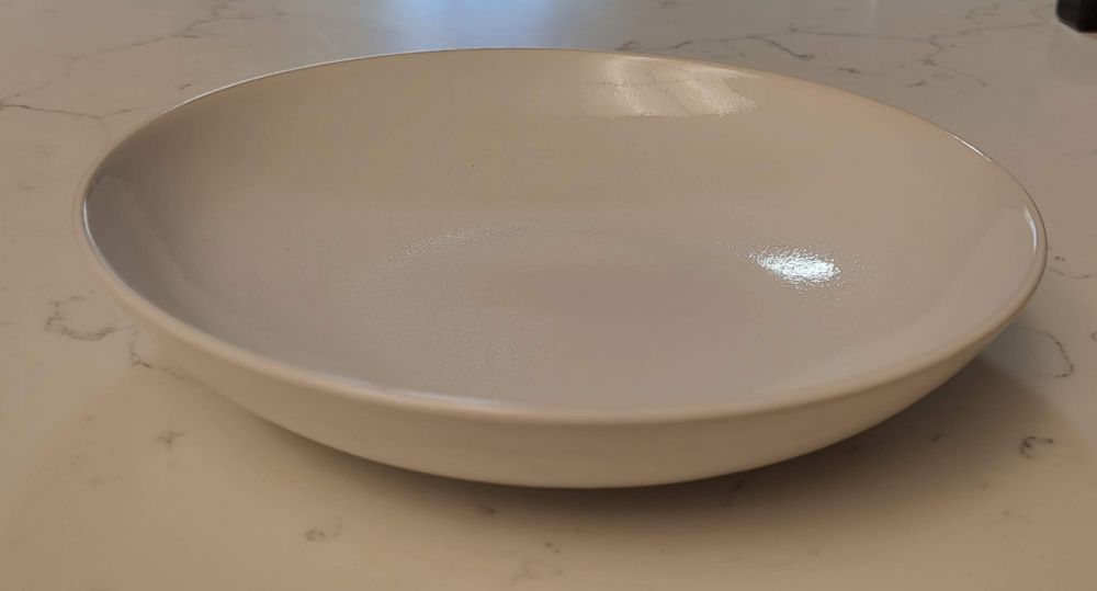 看中一款尺寸还可以(11寸),且没有扁平外圈,适合上菜尤其带些汤汁的。打上税约10刀一只,价格尚可。买了4只,回家再拍真相。