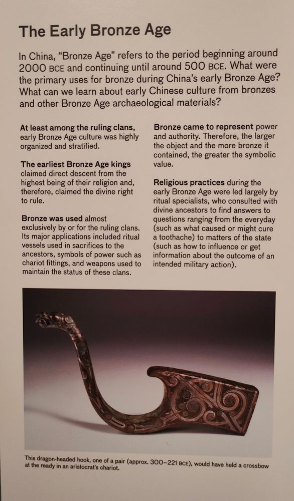 在中国,“青铜时代”始于公元前约2000年/1750年,直至大约公元前500年。那时青铜的主要用途是什么?和其它文化的青铜用途有何不同?通过对青铜和青铜时代考古材料的研究,我们关于早期中国的文化有什么了解?