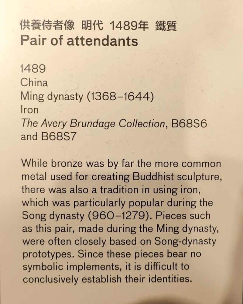 虽然青铜更广泛应用于佛像,铁铸佛像的传统也源远流长,尤盛于宋朝(960-1279)。