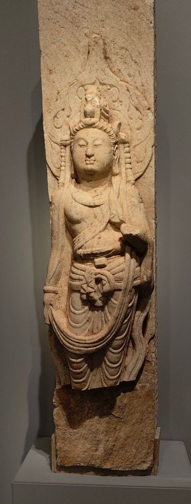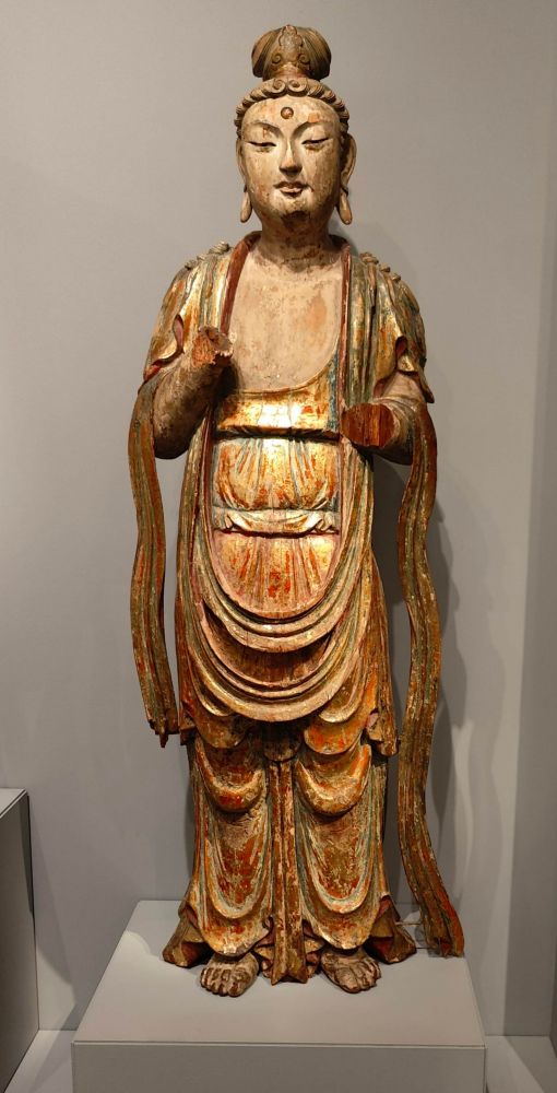 如图所示,菩萨立像大约是辽(916-1125)或金(1115-1234)年间。