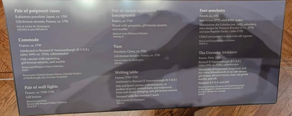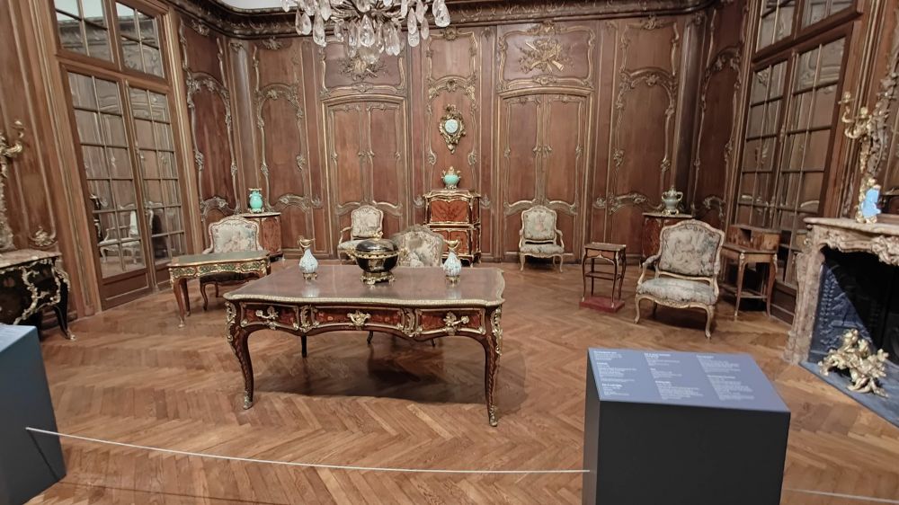 目前,这间展室的展出是为了展示美术馆收藏的洛可可式家具和装饰艺术品(rococo furniture and decorative arts),其中包括当时巴黎最杰出的橱柜工匠伯纳德二世·范里桑伯格 (Bernard II Vanrisamburgh) 的四件作品。