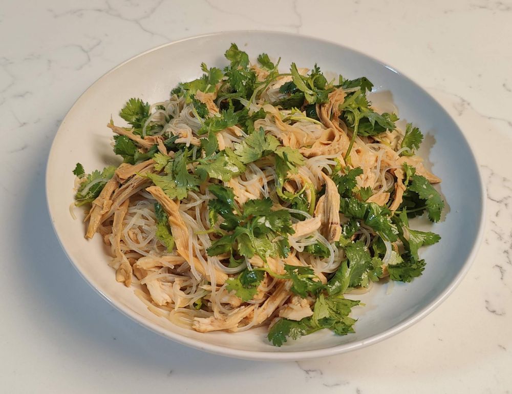 香菜凉拌三丝(笋干丝鸡丝粉丝):
