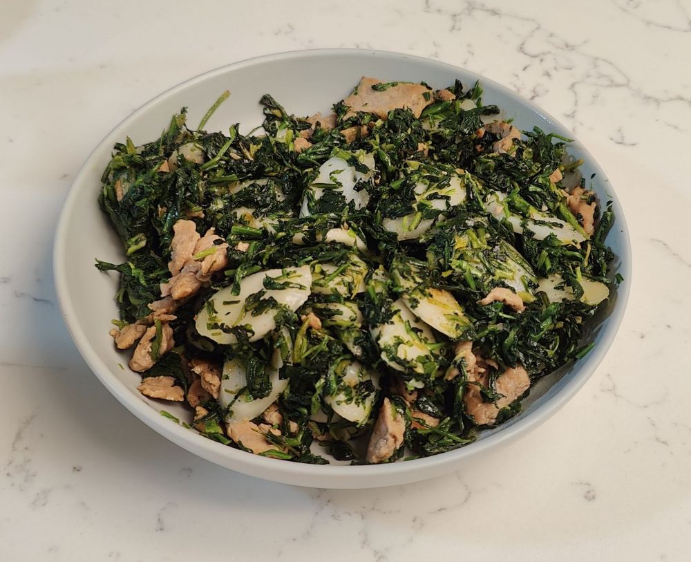 荠菜肉丝炒年糕(必须现炒):