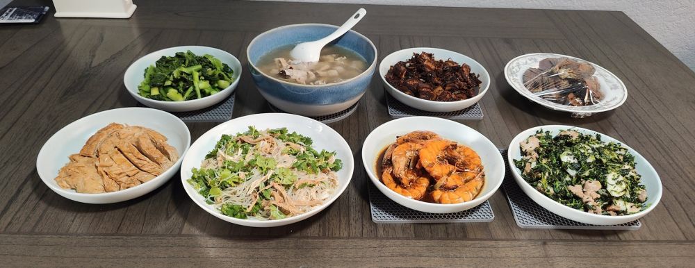 菜谱初稿早早拟好:素烧鹅,熏鱼,香菜凉拌三丝(笋干丝鸡丝粉丝),蚝油芥蓝,梅干菜红烧肉,笋干仔排,荠菜肉丝炒年糕。