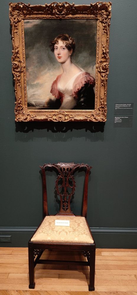 《托马斯·奇彭代尔风格的边椅》,英国,约1760年;桃花心木和锦缎(Mahogany and damask)。