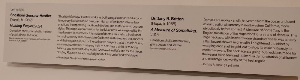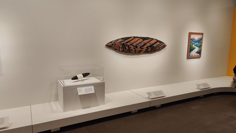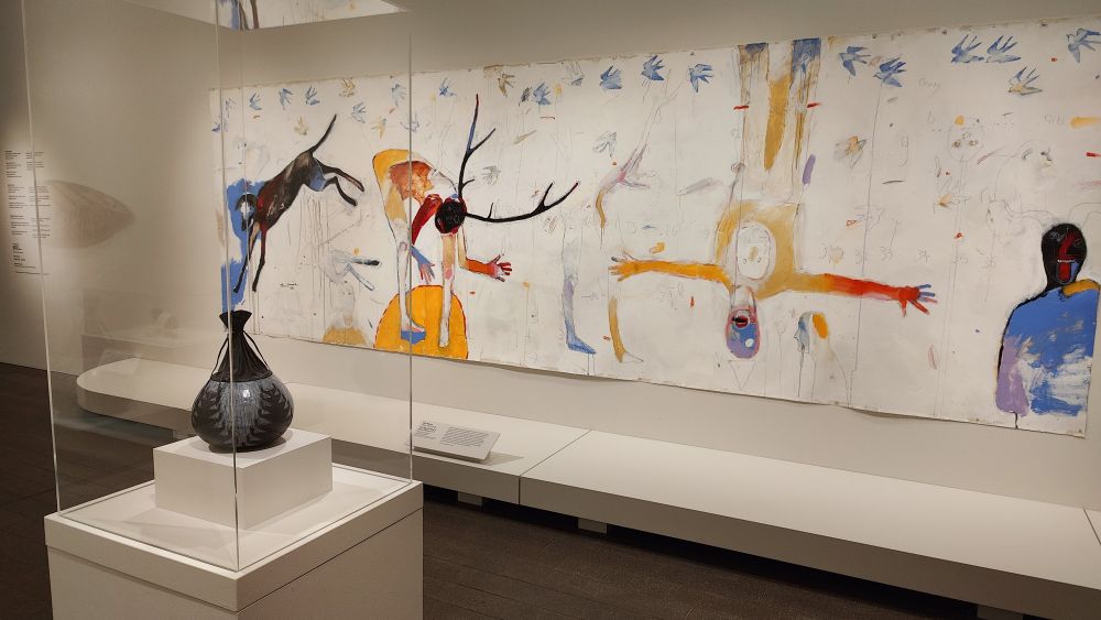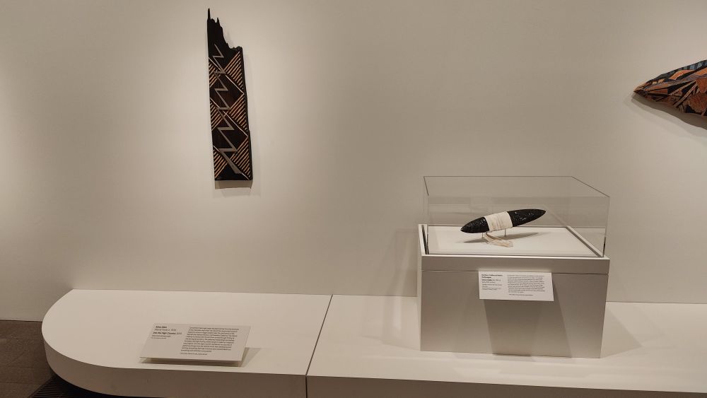 这个画廊里的艺术品跨越了时间和材质。有些是旧金山美术博物馆(Fine Arts Museums of San Francisco)的藏品;有些则借自艺术家和其他社区成员的个人和家族收藏。它们共同展现了艺术、仪式(ceremony)、土地和土地更新(the land's renewal)之间的相互联系,以及过去、现在和未来世代之间的延续性。