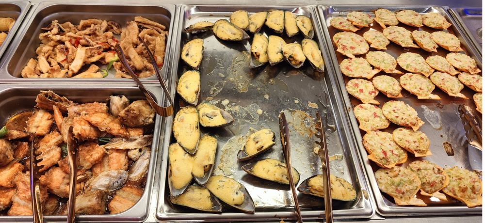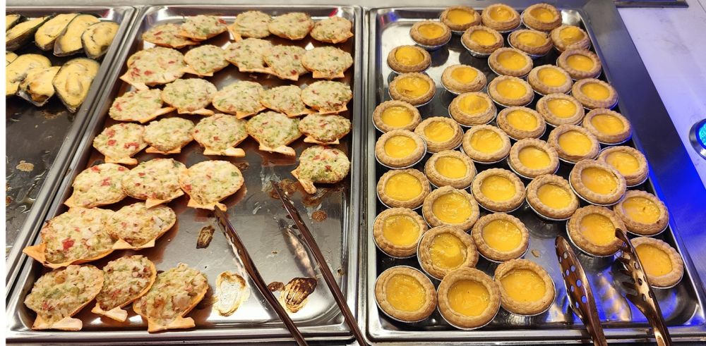 海鲜质量一般,品种或许比Fusion Buffet多一些,品质、风味未必好,有些还严重不如。小龙虾几乎绝食几星期了,腹中空空、毫无一物;扇贝食材和味道都不行,严重不如Fusion Buffet的蟹肉扇贝。余不赘述。