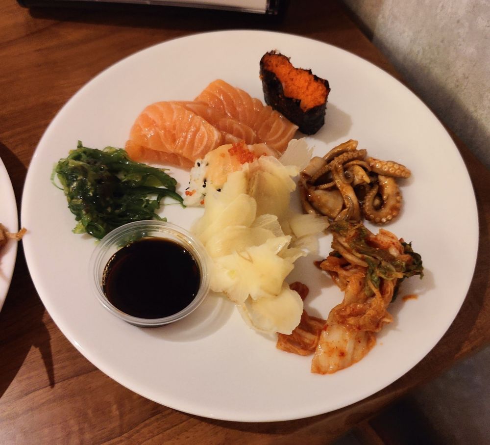 我的第一盘日式(三文鱼生鱼片,鱼子寿司等):