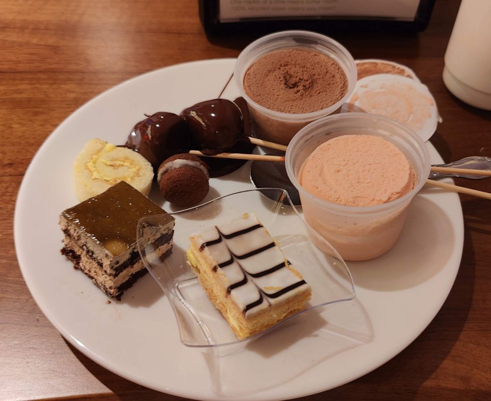 甜食之外,盘中还有草莓巧克力火锅、巧克力冰淇淋和草莓冰淇淋。