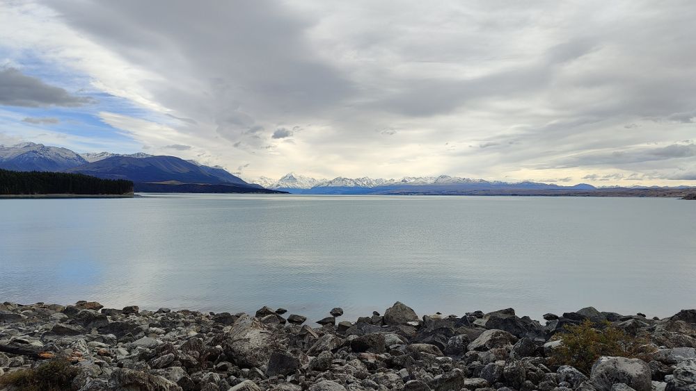 Lake Pukaki,华人叫它牛奶湖。因为这湖水的蓝色,有点淡淡的乳白,和蒂卡波湖的雪山水醉人蓝颇不同。各有特色,无须比高低。