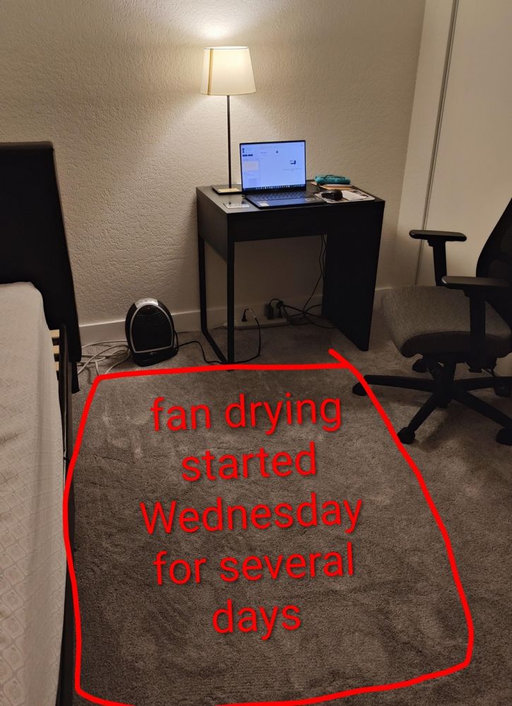 如此兴师动众直到星期天,地毯才基本干燥了。空调和风扇依然开着,尽量争取彻底干燥。