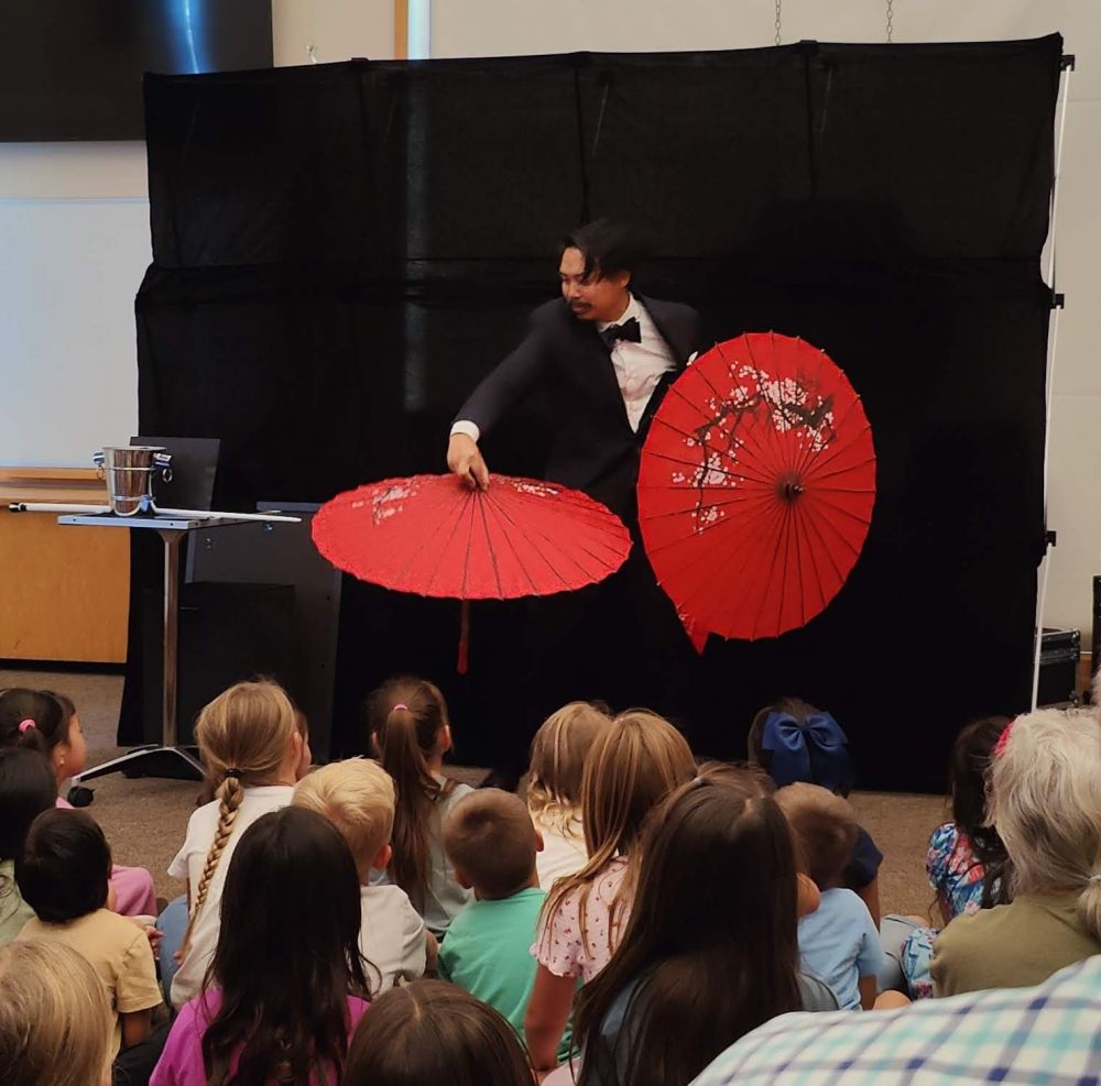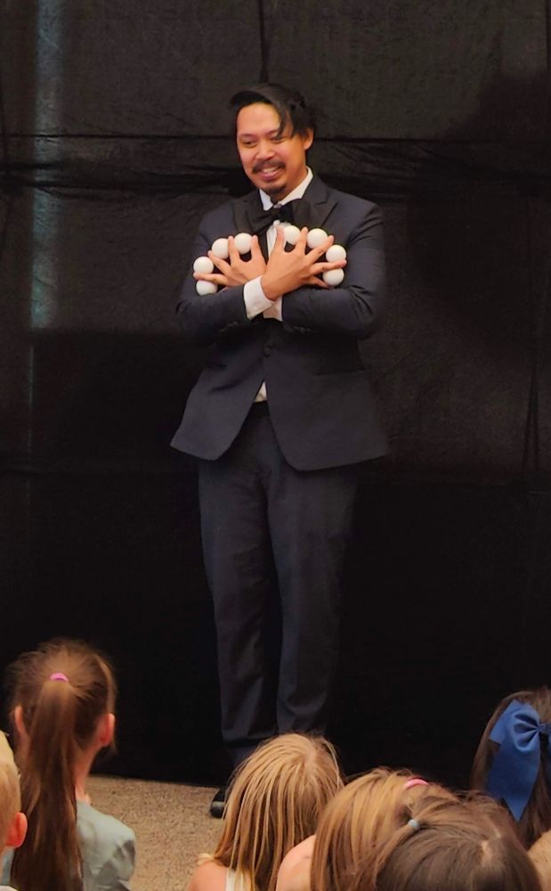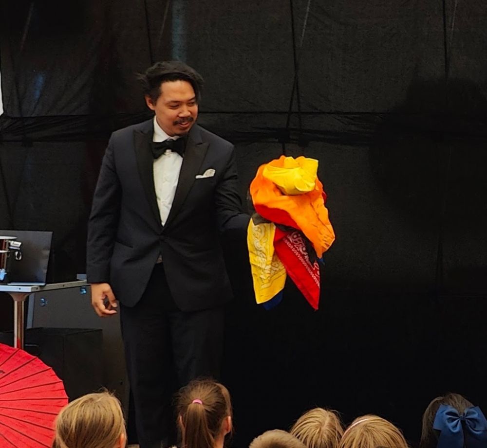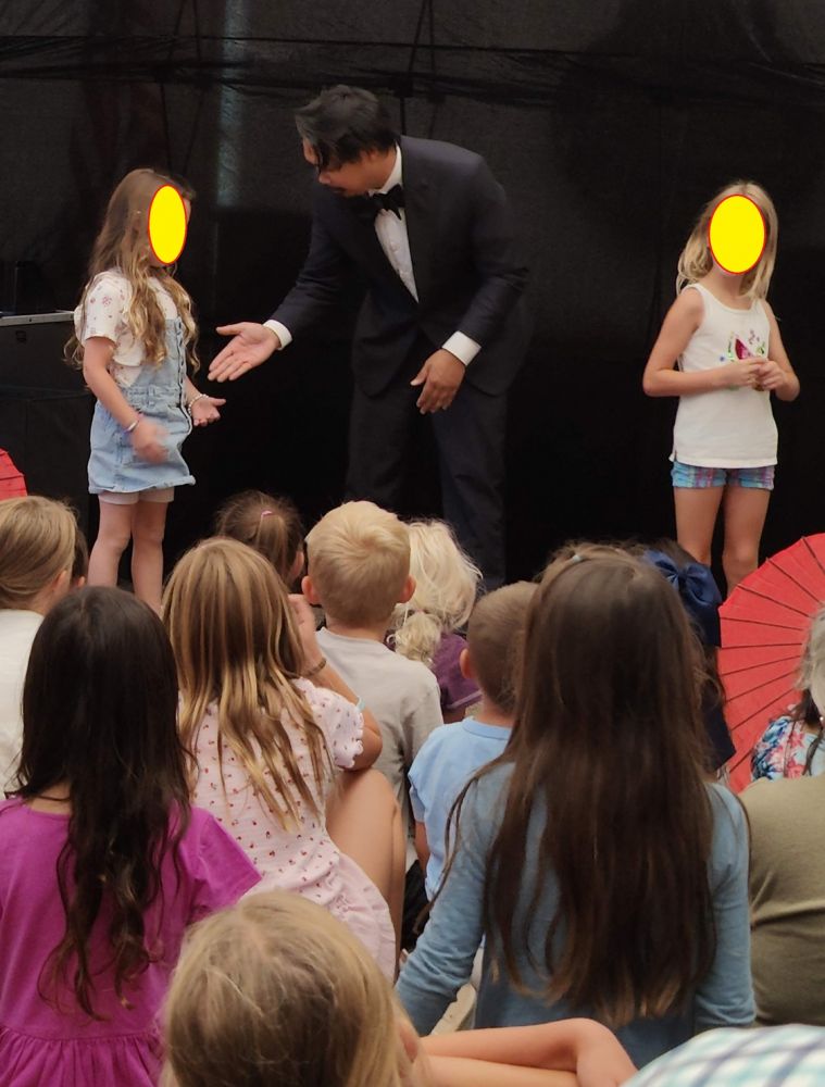 阮大师(Michael Nguyen)的魔术秀准时开始,很精彩。别说孩子们看的兴高采烈,家长们、爷爷奶奶们也哇、哇、哇,“This is so good!”