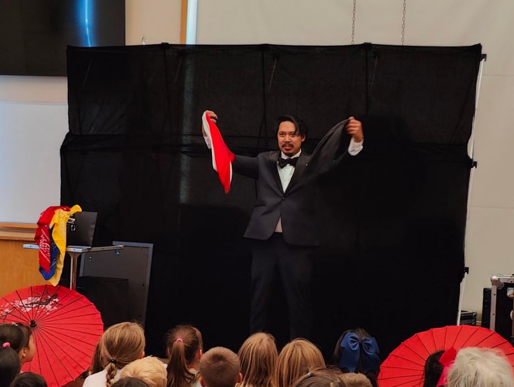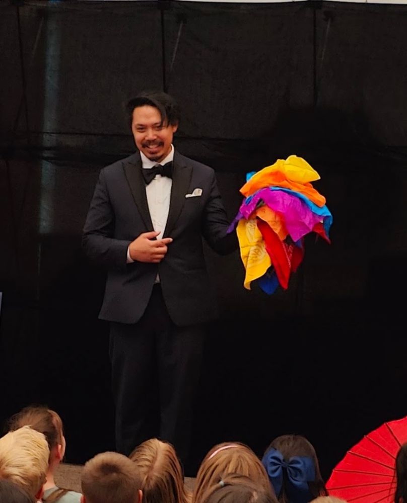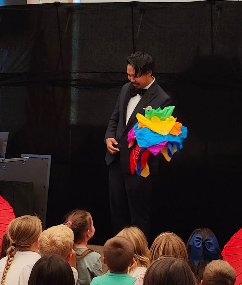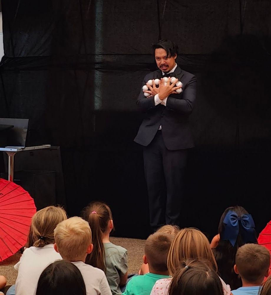 阮大师(Michael Nguyen)的魔术秀准时开始,很精彩。别说孩子们看的兴高采烈,家长们、爷爷奶奶们也哇、哇、哇,“This is so good!”