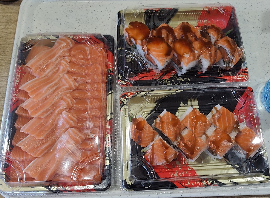 买了两款熏三文鱼,一小罐三文鱼王的鱼籽。