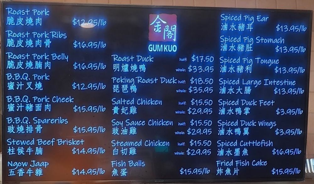富兴中心停车场就在华埠的底下,华埠里有两家烧腊餐馆。