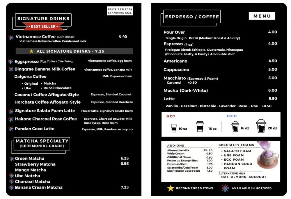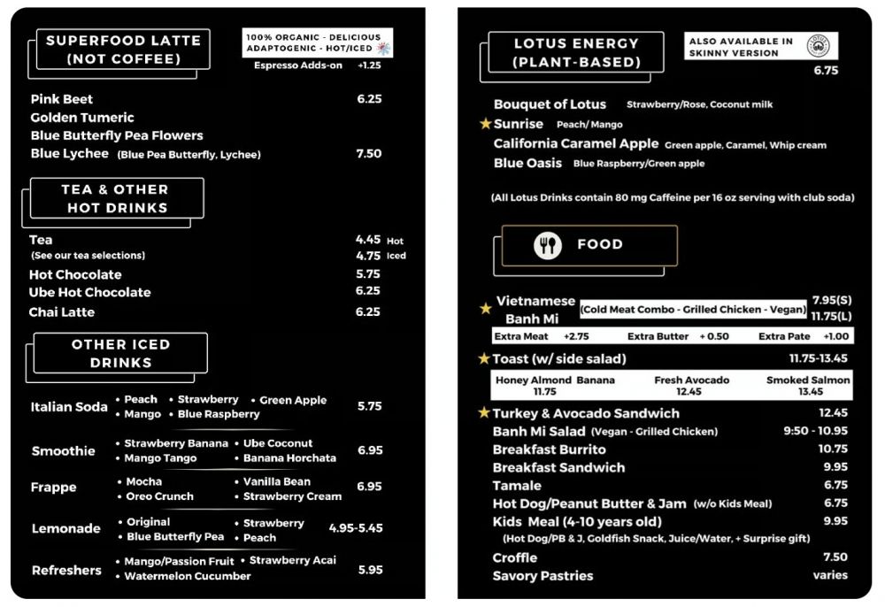 我事先在咖啡馆的网站上截图了餐饮单(menu):