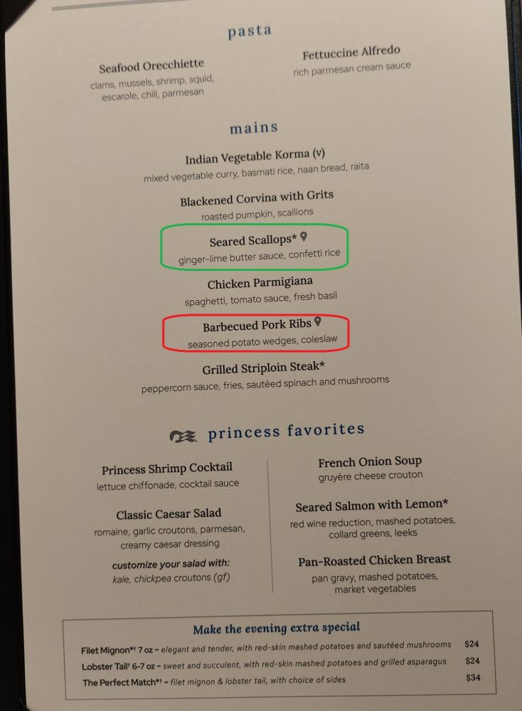 主菜餐单: