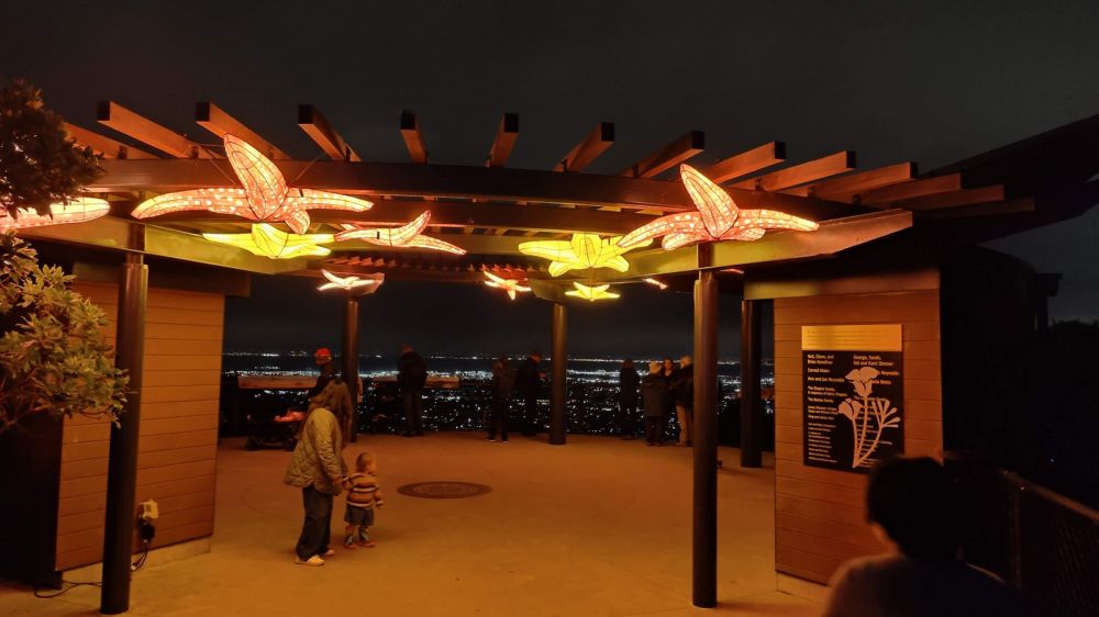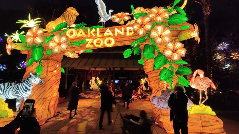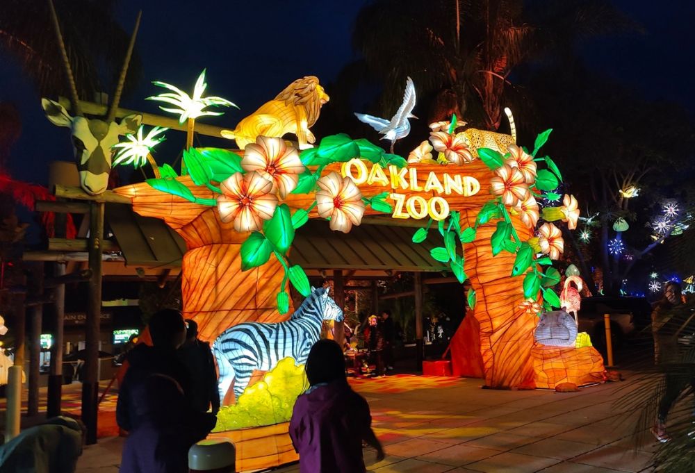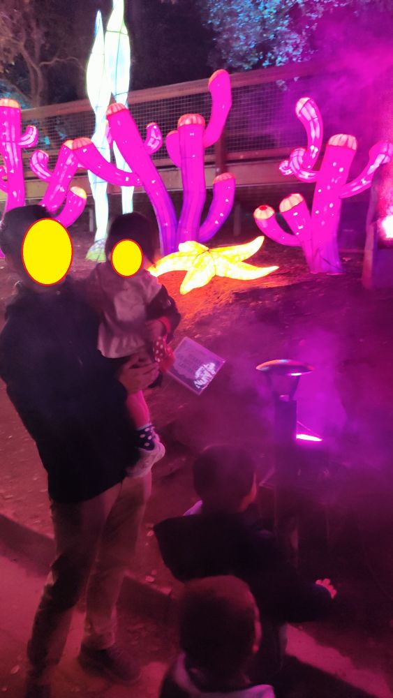 今天德州小阿立(大儿子)一家飞旧金山。晚上我们一起去奥克兰动物园看彩灯秀(Oakland Zoo GLOWFARI)。