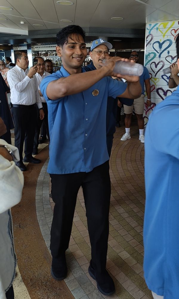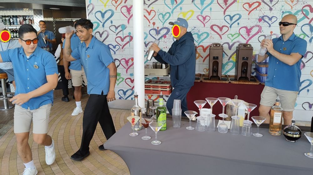 马提尼调酒秀三小哥单挑 自告奋勇游客争锋