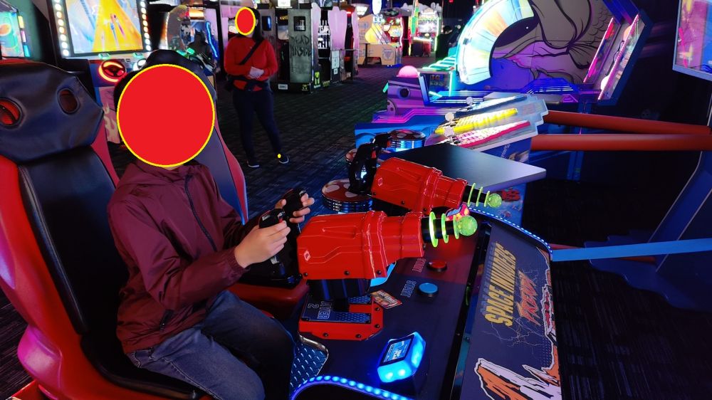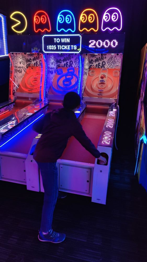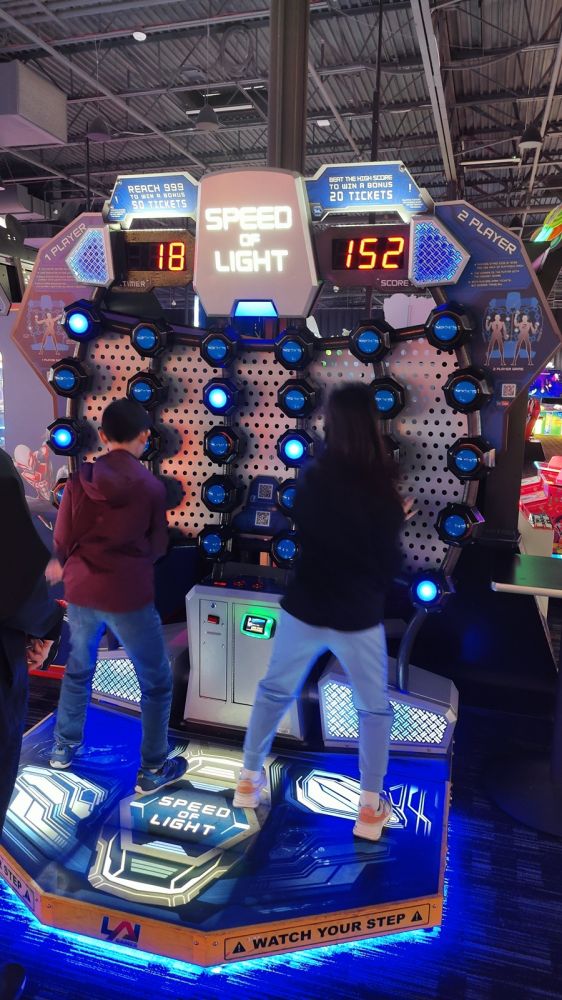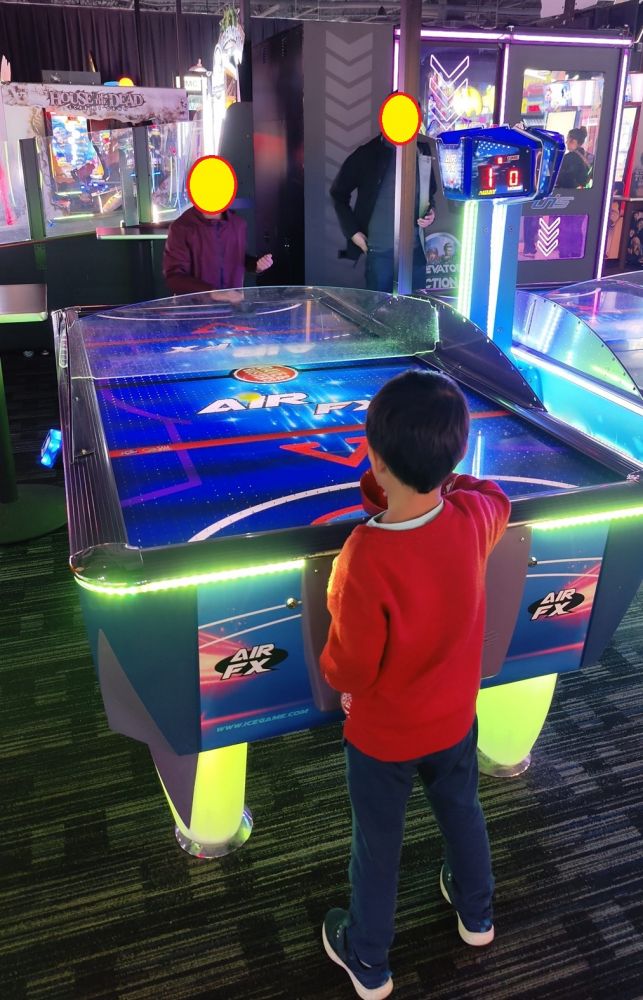 圣诞期间的立家大团圆几天计划都由小小阿立(小儿子)早早安排好了。今天上午我们到一个大笑拼中心的《Dave & Buster’s》集合,立家军大战机器人。