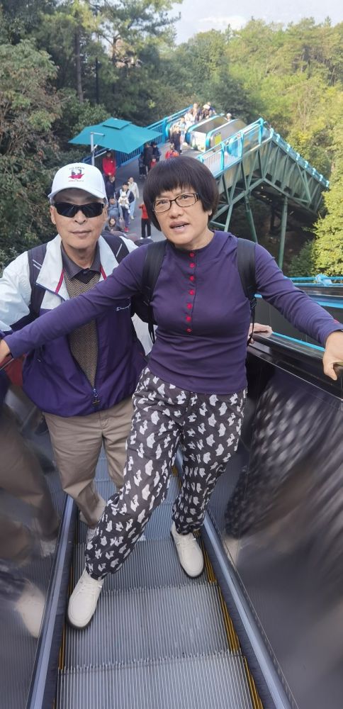 阿立注:在南天门索道候车室里,韩国导游正好在我们前面。候车室里人声鼎沸,中国特色的大声喧哗。