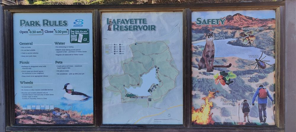 水库徒步道环绕水库一大圈,2.7英里(不到4公里半)。我们不走整圈,走到哪算哪: