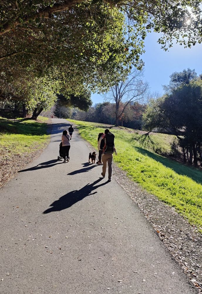 旧金山的冬天,阳光灿烂的日子,暖洋洋很舒服。我的皮夹克其实不用穿了。徒步道上常见到不少人只穿短袖了,男男女女、各族裔都有。