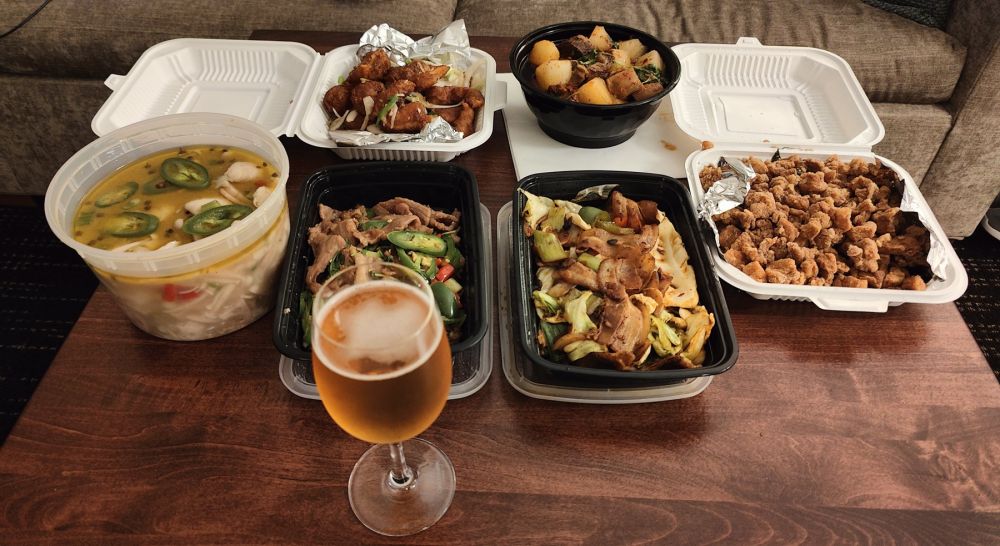 昨晚的阳历新年除夕(New Year’s Eve),我们在欢乐山庄避难,《川府家宴》叫外卖,该吃吃、该喝喝。