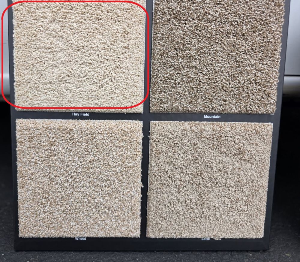 4款颜色我们都觉得左上的hay field 最好,但小小阿立嫂喜欢更明亮、摩登(modern)的颜色“I would ask if they have white or light gray(not pure white)。”