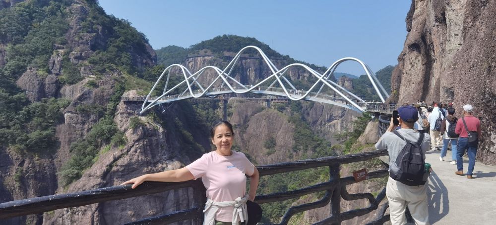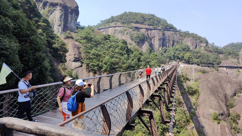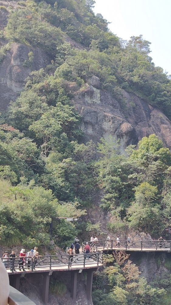 大部队如意桥上万事如意毕,集体下山。北门索道下山,出去再坐景区小交通车(自己走路是万万吃不消了)。神仙居游程圆满结束。