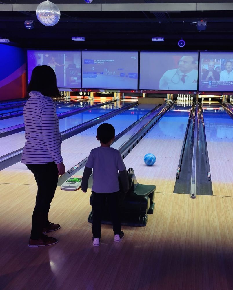 小小阿立的安排,先带孩子们去海鲜包肥所在之太阳谷笑拼中心的《Round 1 Bowling & Amusement》玩保龄球。