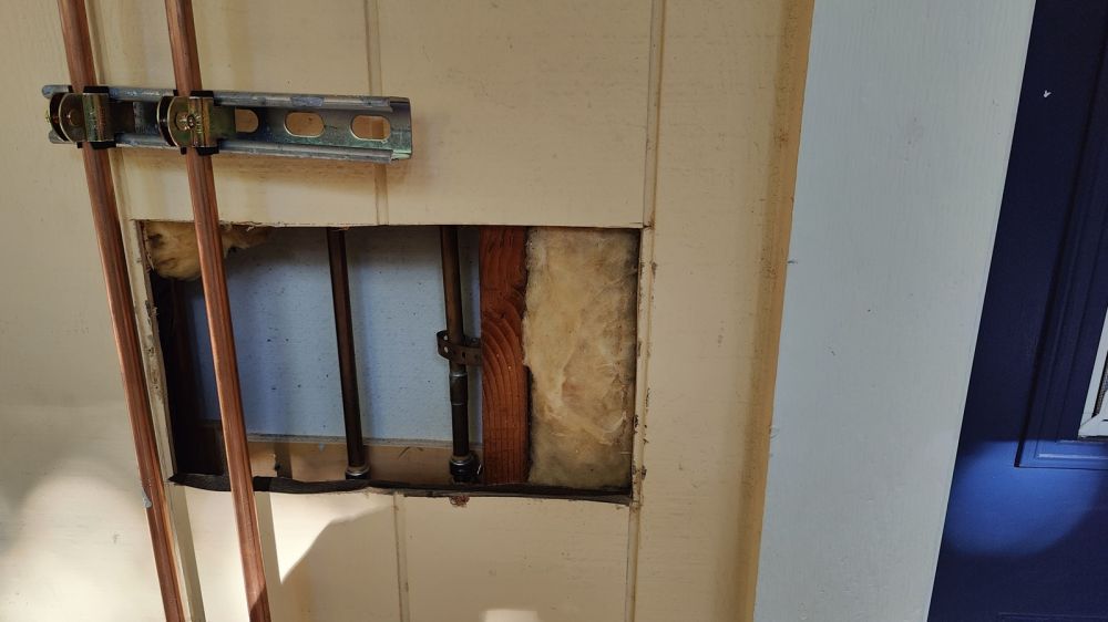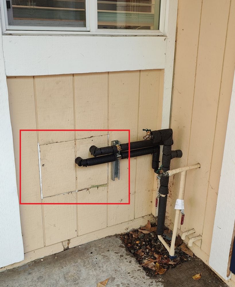 这次把旧水管的进口截断了,新水管是直接从后院墙直接通到所需部位:两个卫浴室,厨房;洗衣间的进水从客用卫浴通过来。