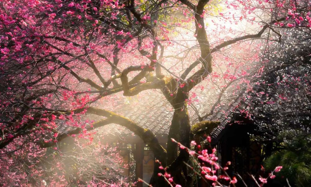 梢头粉黛仍娇俏,满树玫红好似仙。