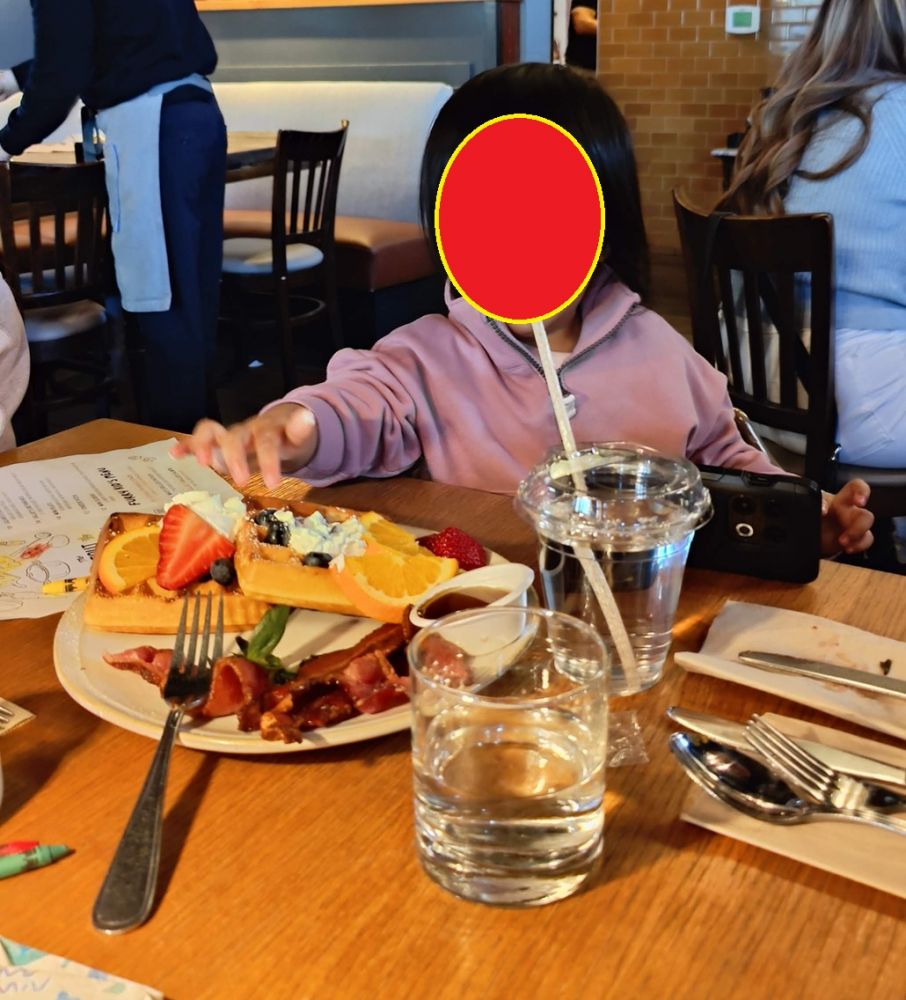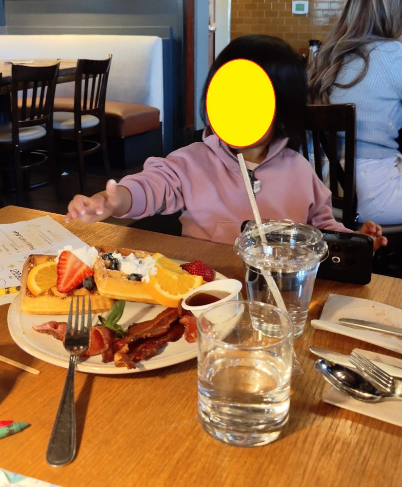 溏心班尼迪克蛋有两个(都是溏心蛋),配上烟熏三文鱼、杯狗(bagel),真好吃。侍者小哥还忽悠我加了avocado(牛油果),夹在烟熏三文鱼下面,也好吃。