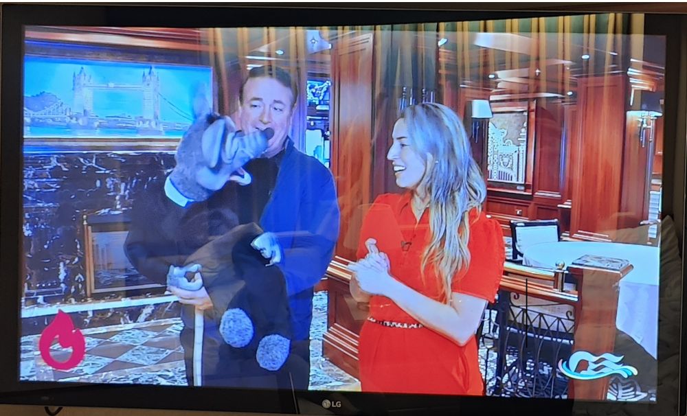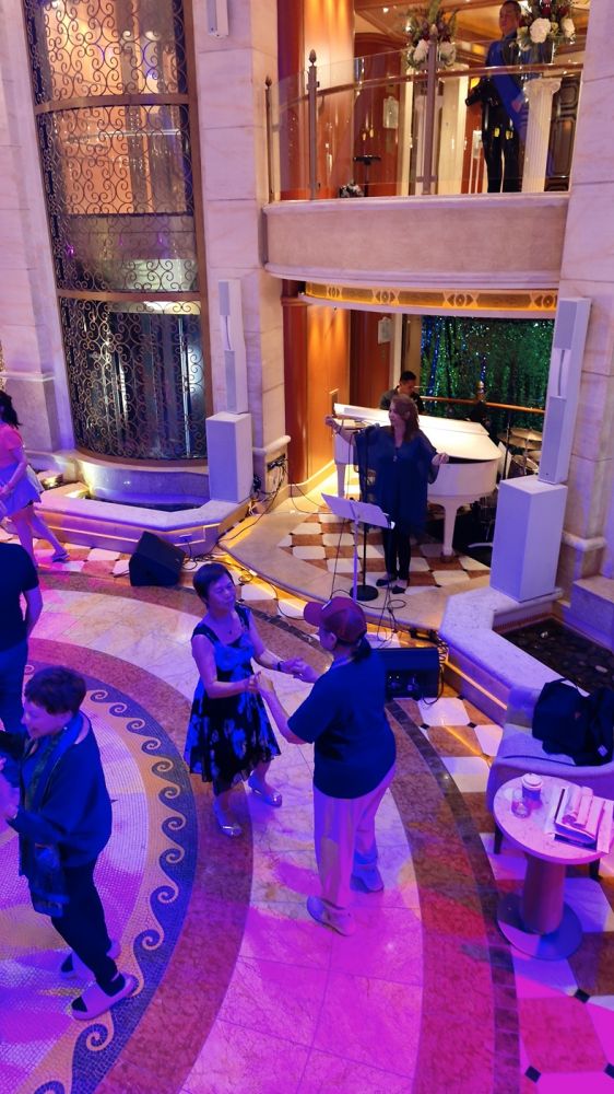 今天的晚餐是正装(formal night)。米国佬农民,不像大英帝国的煎透馒(gentlemen),西装领带甚至燕尾服。公主游轮公司的解释就是男的休闲外套或运动外套(sports coat)即可,领带爱打不打,至少请穿有领子的衬衫。